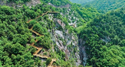 兴唐寺景区内的爬山连廊 山西省太岳山国有林管理局供图