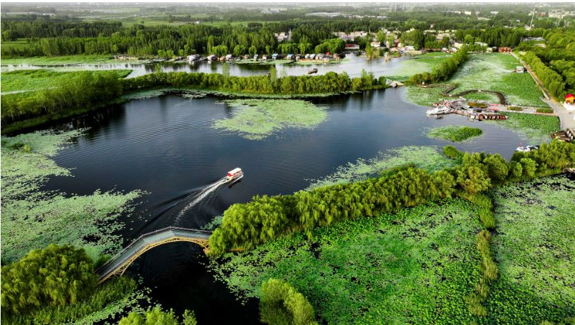 这是山东省济宁市微山县微山湖二级坝湿地公园景色(2024年8月13日摄)。新华社记者 郭绪雷 摄