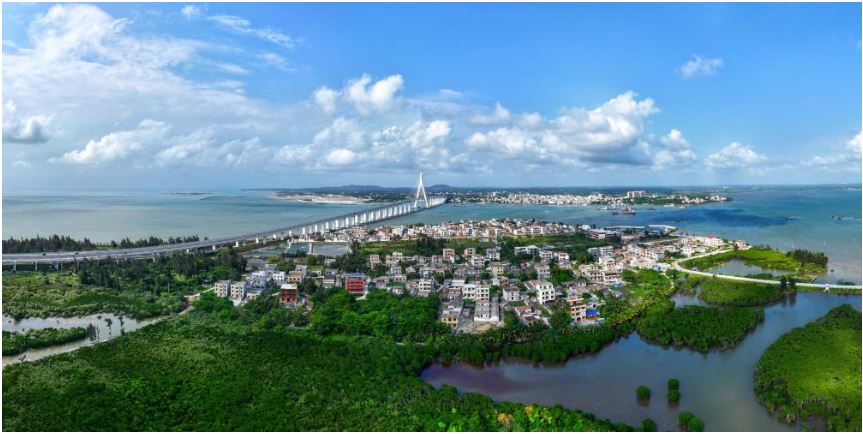 在海南省海口市东北部海岸,一条跨海大桥把曾经“藏在深闺”的北港村拉进城市生活圈。